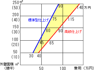 施工場所、塗料、工法により開きがありますが、施工面積による費用の目安は右表をご覧ください。